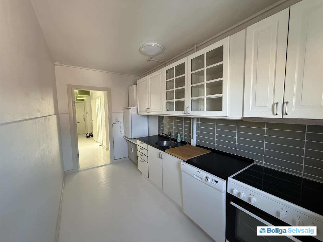 Lejligheden er på 83 m2, bestående af to værelser, et kammer, badeværelse og seperat køkken. Derud over er der en hyggelig altan med udsigt mod gården, soveværelse med stort skydedørs skab