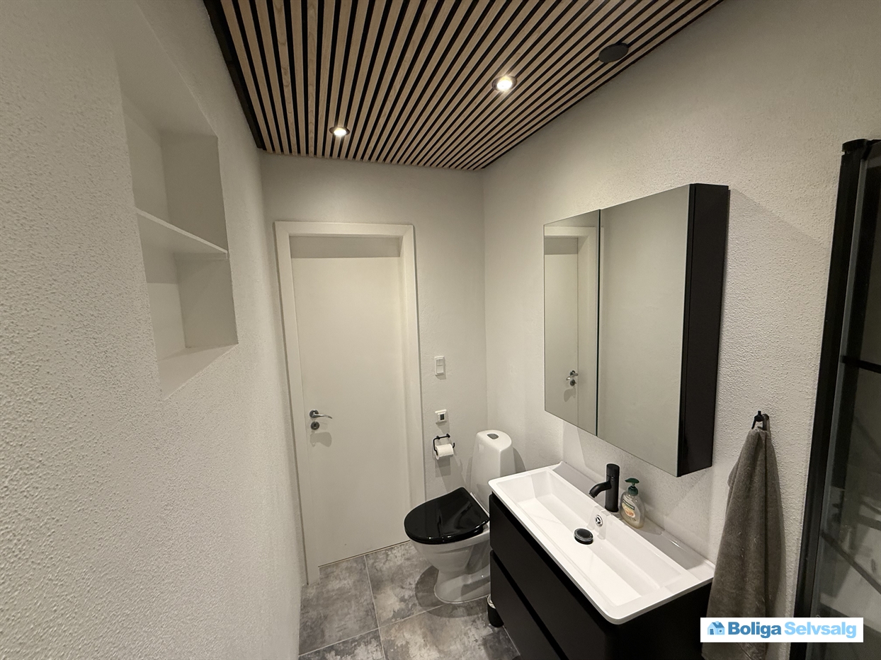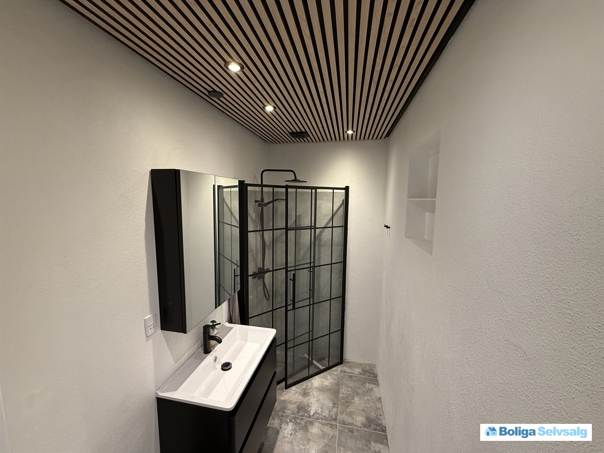 Badeværelset er renoveret af tidligere lejer, i 2022.