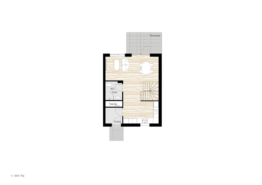 Bofællesskabet består af 44 boliger i forskellige størrelser og et fælleshus på 329 m2 med gæsteværelser og et væld af faciliteter.