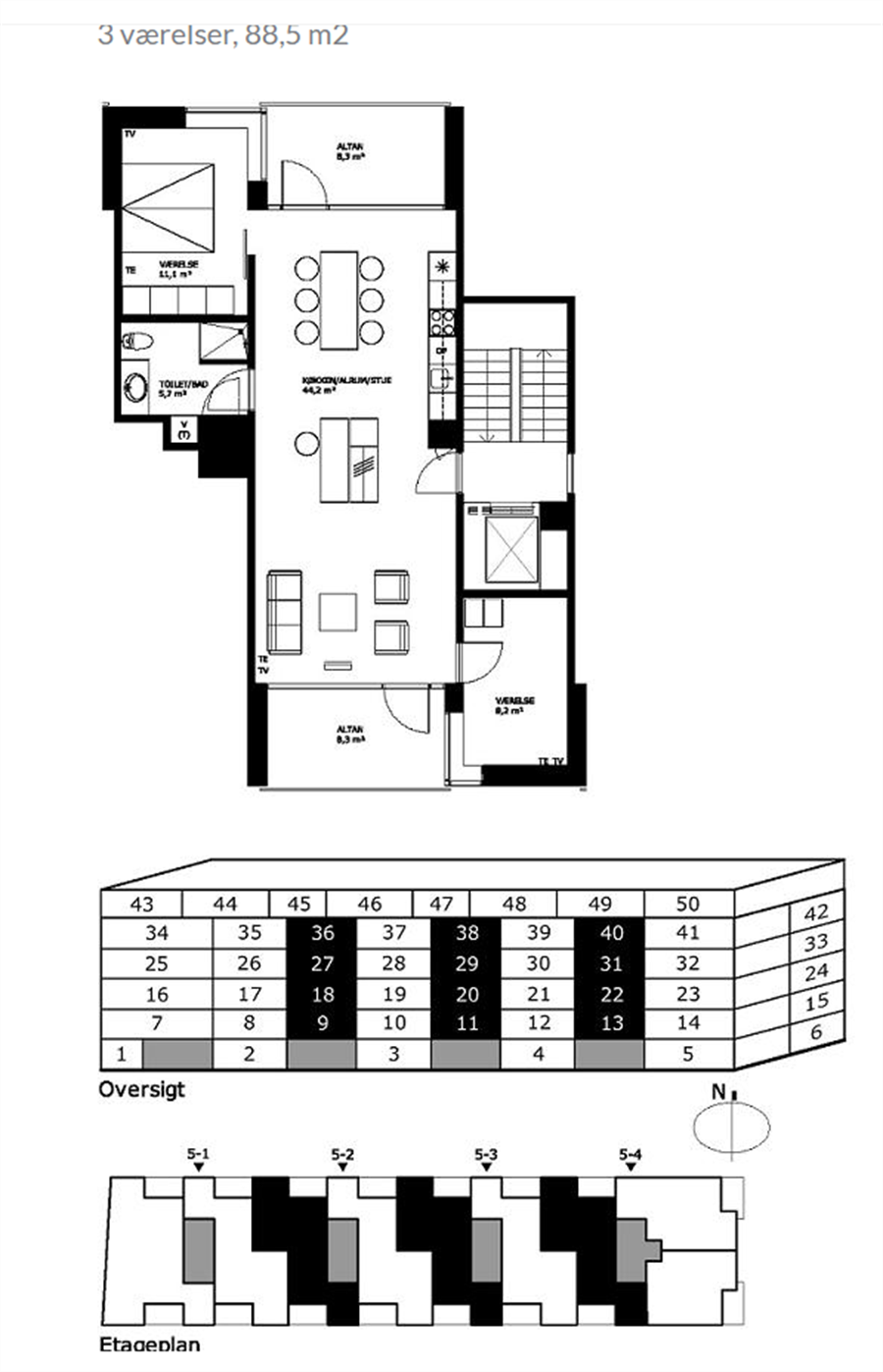Stuen giver også adgang til den ene af de 2 store indbyggede altaner. Dens store areal gør den meget brugbar og helt ugenert, hvad enten man vil nyde solens stråler på liggestole eller sidde og spise ved borde og stole.