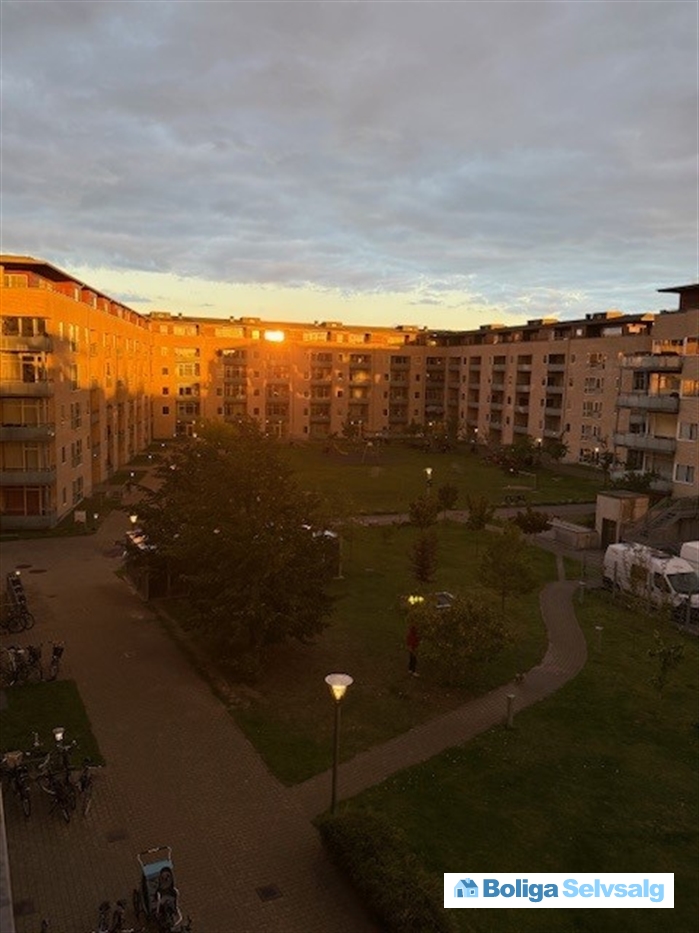 Igen her er der på afstand udsigt til nabobygningerne, men ikke mindst endnu en altan, som giver de dejlige aftner muligheder for at sidde og spise udenfor, igen helt ugenert på den store indbyggede altan.