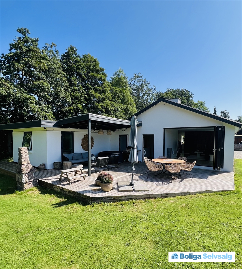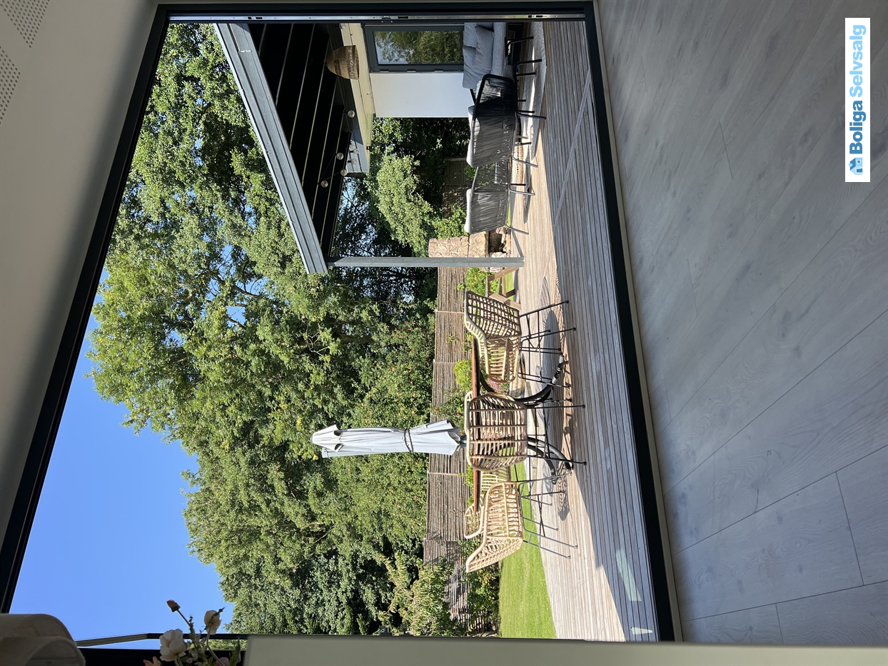 Vi har elsket at bo her og vi håber, at I kan mærke det, når I træder ind. Det her har været vores drømmehjem. Det er et hjem, hvor børnene har lært at cykle, hvor vi har spist solvarme bær direkte fra busken, og hvor man kan nyde en rolig kop kaffe på terrassen, uden larm. Her er plads til børn i haven, gæster i stuen og ro i hverdagen. Et sted, hvor I både kan smække benene op og åbne foldedøren for naturen.