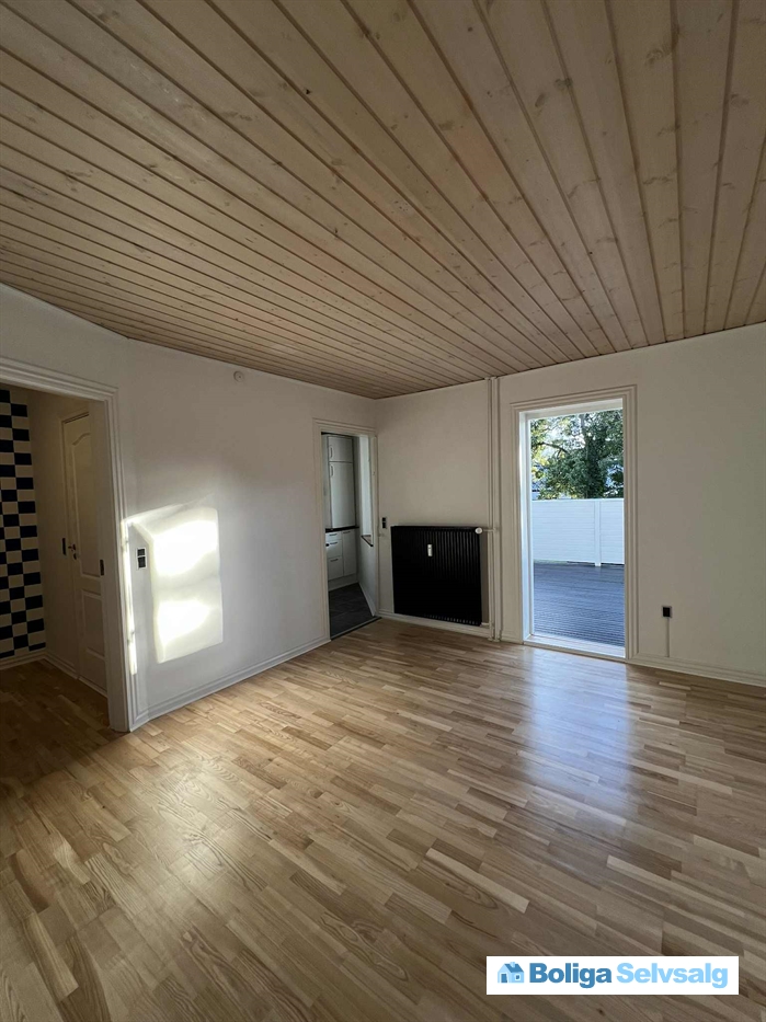 Lejligheden er indrettet med et stort soveværelse med sydvendte vinduer og en elegant fransk dør ind til stuen. Stuen fungerer som lejlighedens naturlige samlingspunkt med adgang til det hyggelige køkken (med opvaskemaskine), entréen samt udgang til en helt fantastisk privat terrasse. Terrassen er solrig og rummelig med trappenedgang til en dejlig, lukket fælleshave, som deles med de tre øvrige lejligheder i ejendommen.