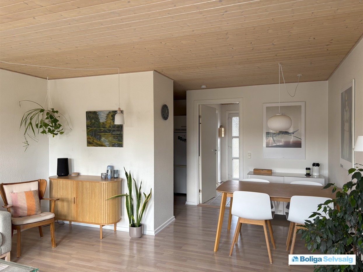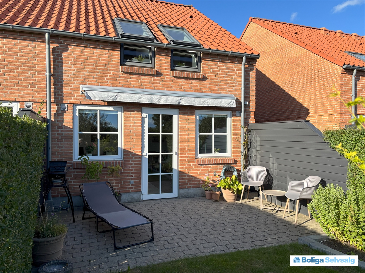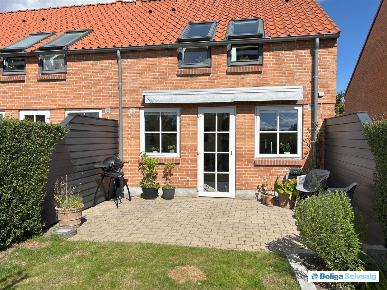 Fra stuen er er udgang til skøn sydvendt, solrig og ugenert have med fliseterrasse, græsplæne og blomsterbed. Der er desuden elektronisk markise.