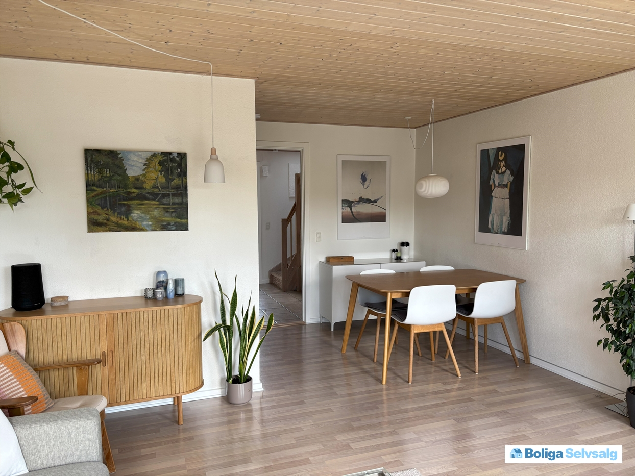 Boligen er i 2 plan med moderne indretning. Stueplan indeholdende entre/bryggers med trappe til 1. sal, vaskesøjle og gode muligheder for opbevaring af overtøj/sko. Herfra er der adgang til dejligt lyst gæstetoilet med skabs arrangement fra oktober 2020, samt adgang til køkken/alrum/stue. Entre og gæstetoilet har gulvvarme. Køkkenet er med lyse elementer og masser af skabsplads. Stuen, som har dejligt lysindfald hele dagen, er rummelig med plads til både spisebord og sofaarrangement.