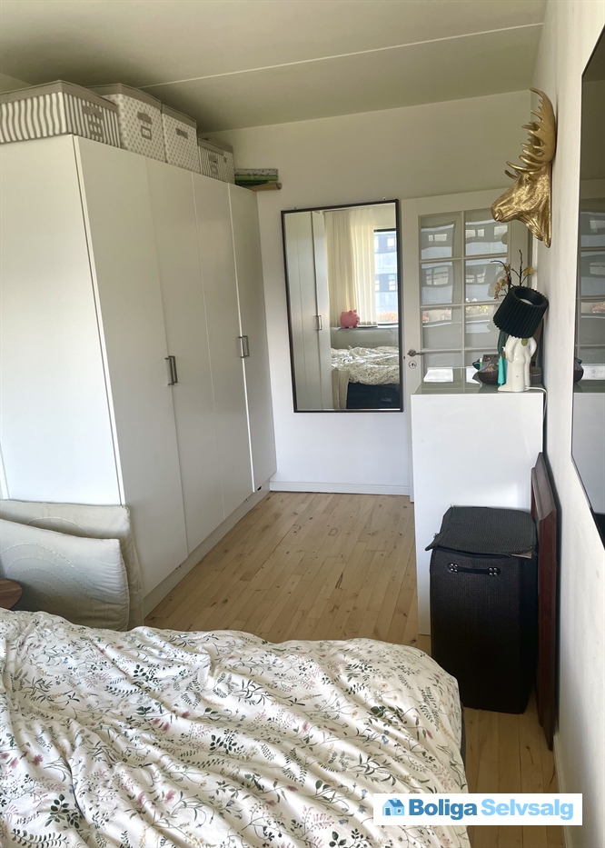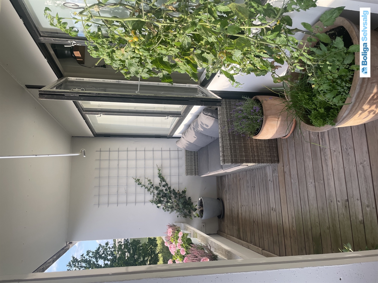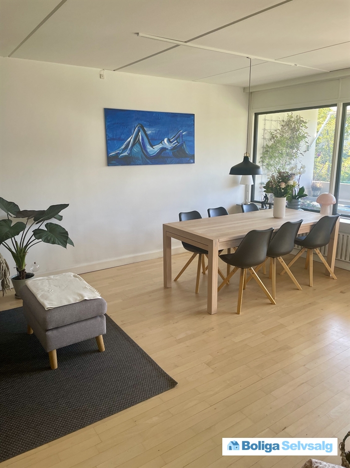 Lejligheden byder på en lys og luftig atmosfære, hvor store vinduespartier og en dejlig, solrig altan lukker dagslyset ind og skaber en fantastisk rumfornemmelse. Her får du en lejlighed, der føles større, end kvadratmeterne antyder – og hvor ude og inde smelter sammen i sommerhalvåret.