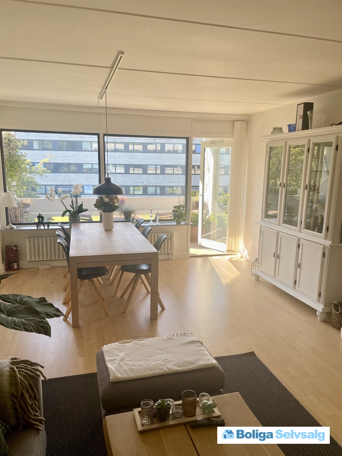 Velindrettet lejlighed med stor altan og topbeliggenhed