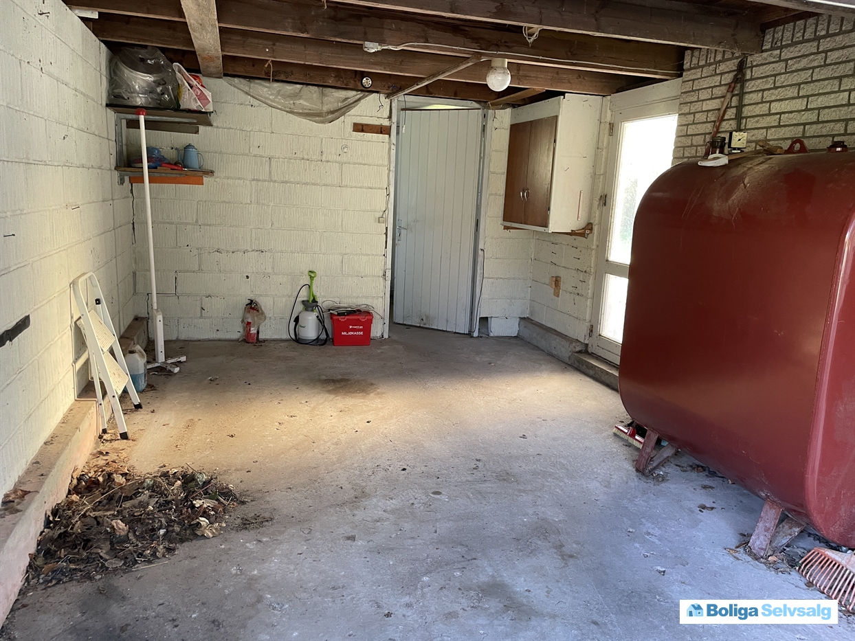 Baggang med grovkøkken og nyt oliefyr ( ny olietank står i garage)
