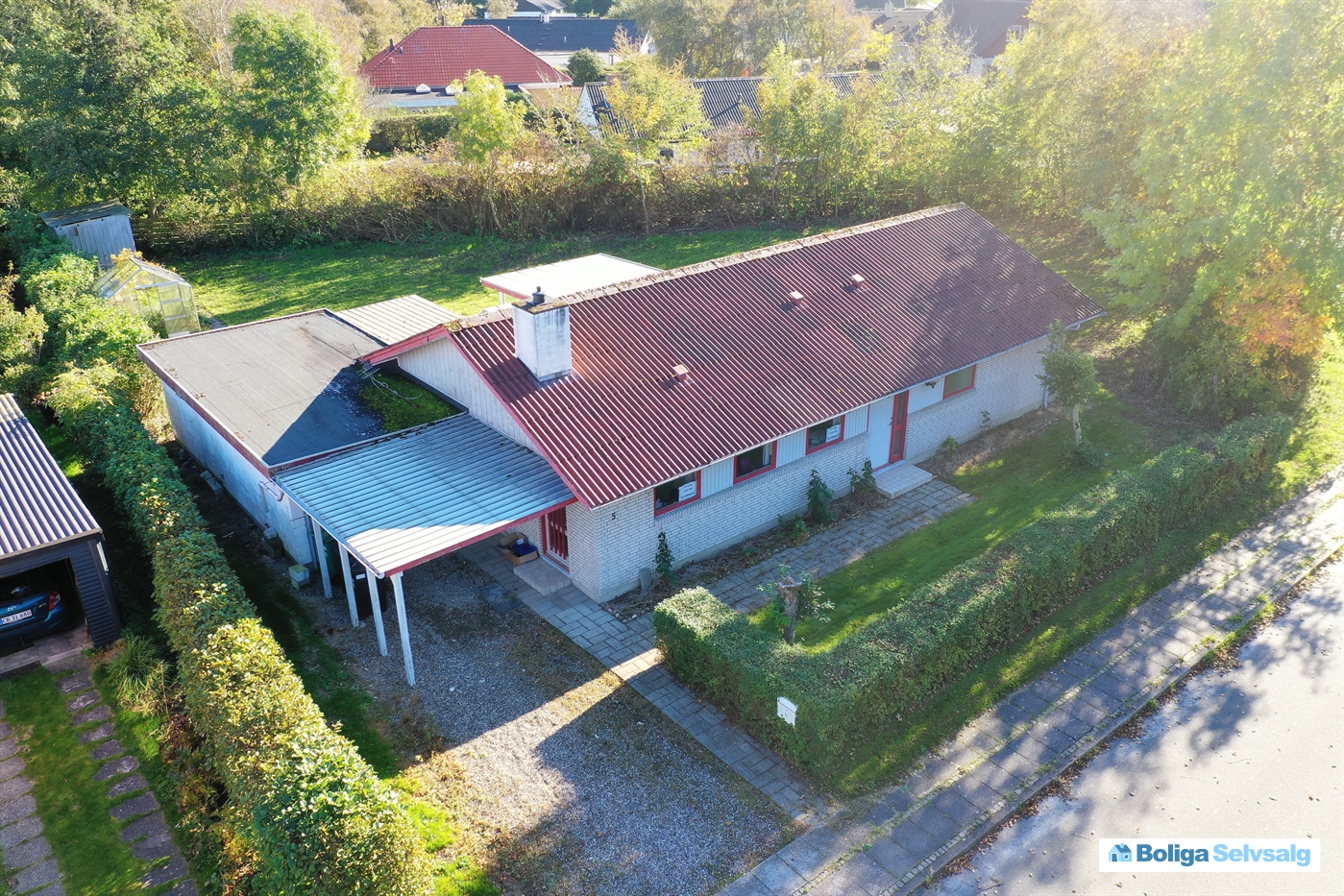 Opført i 1976 beliggende på hjørnegrund i Uglev.
