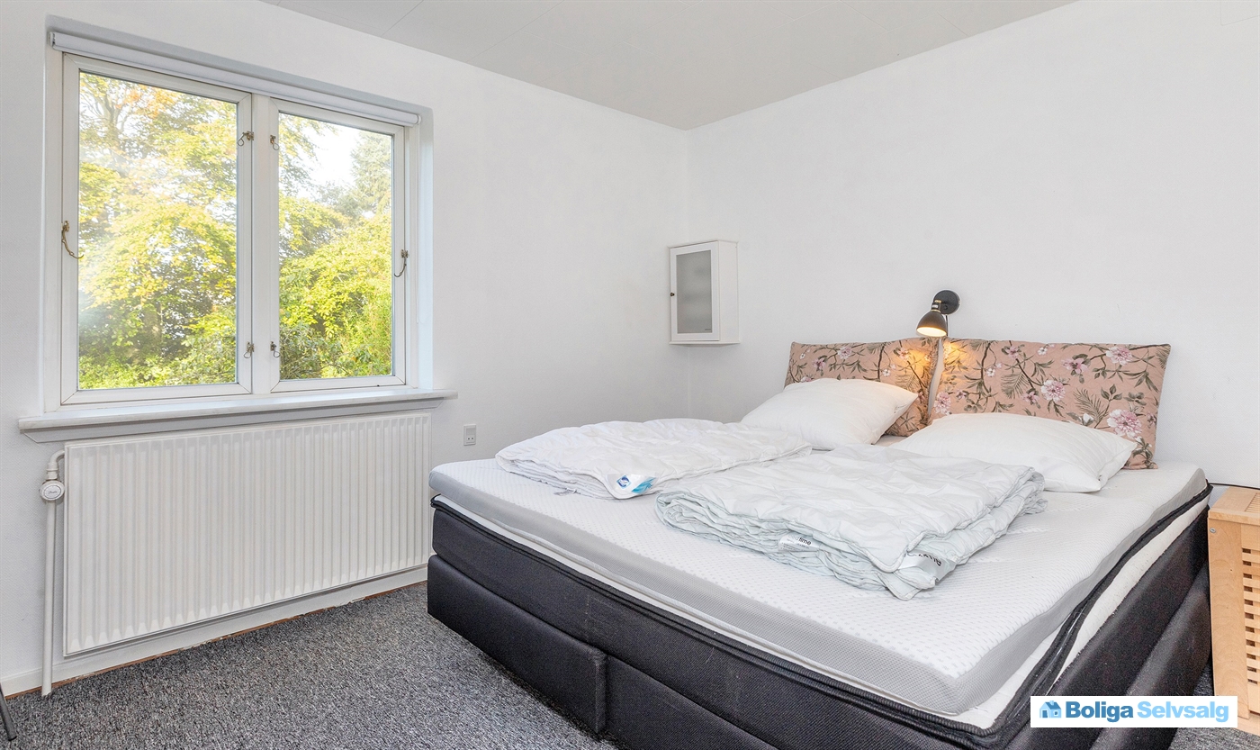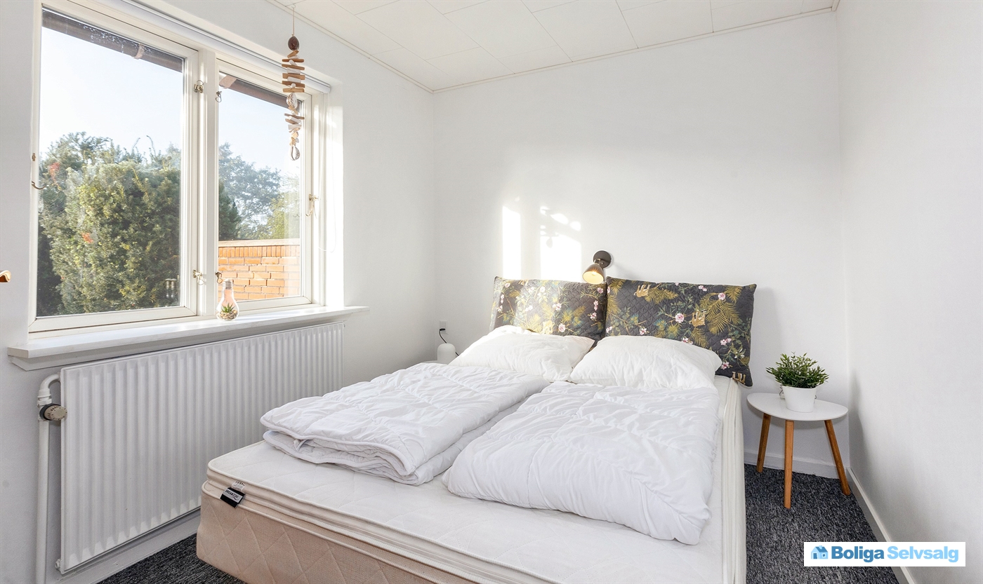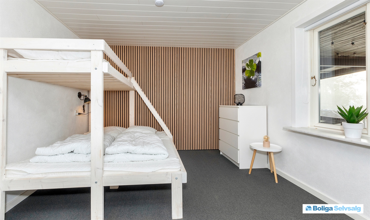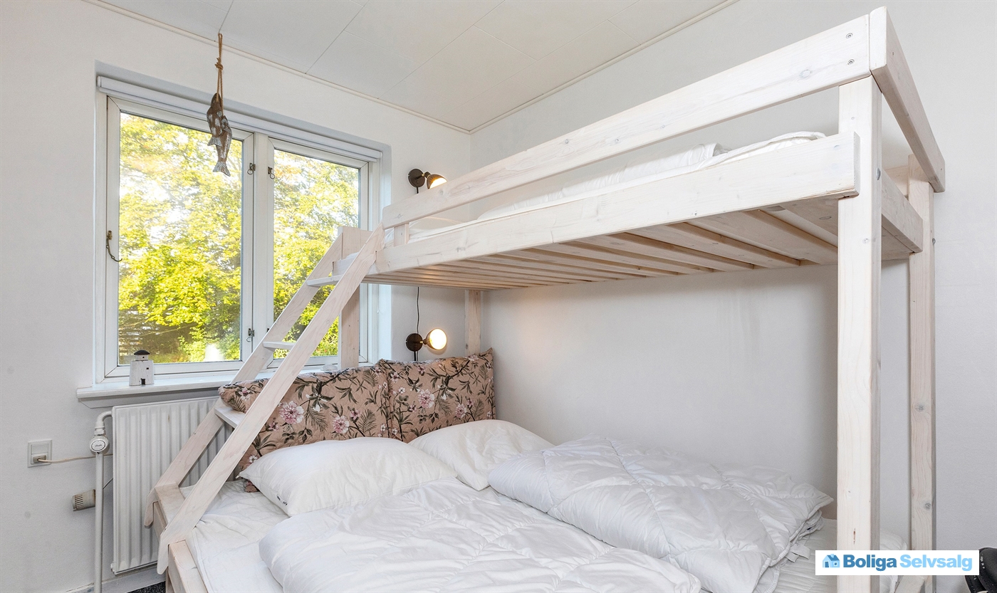 Huset har fire soveværelser heraf 2 værelser med dobbeltseng og køje samt 2 værelser med dobbeltsenge.