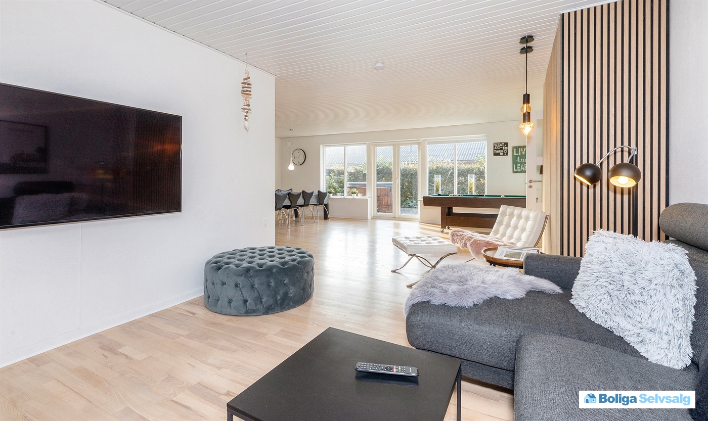 Rigtig lækkert hus der er godkendt som Flexbolig. Derved kan kommende ejer selv bestemme om man vil bruge huset som privatbolig eller sommerhus.