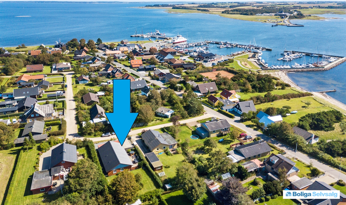 Ferieboligen er yderst velbeliggende med kun ca. 150-200 meter til vand, strand med badebro og Furs havnemiljø med lystbådehavn, færge, butikker og spisesteder. Dagligvareindkøbene kan ordnes 300 meter fra huset i Brugsen.