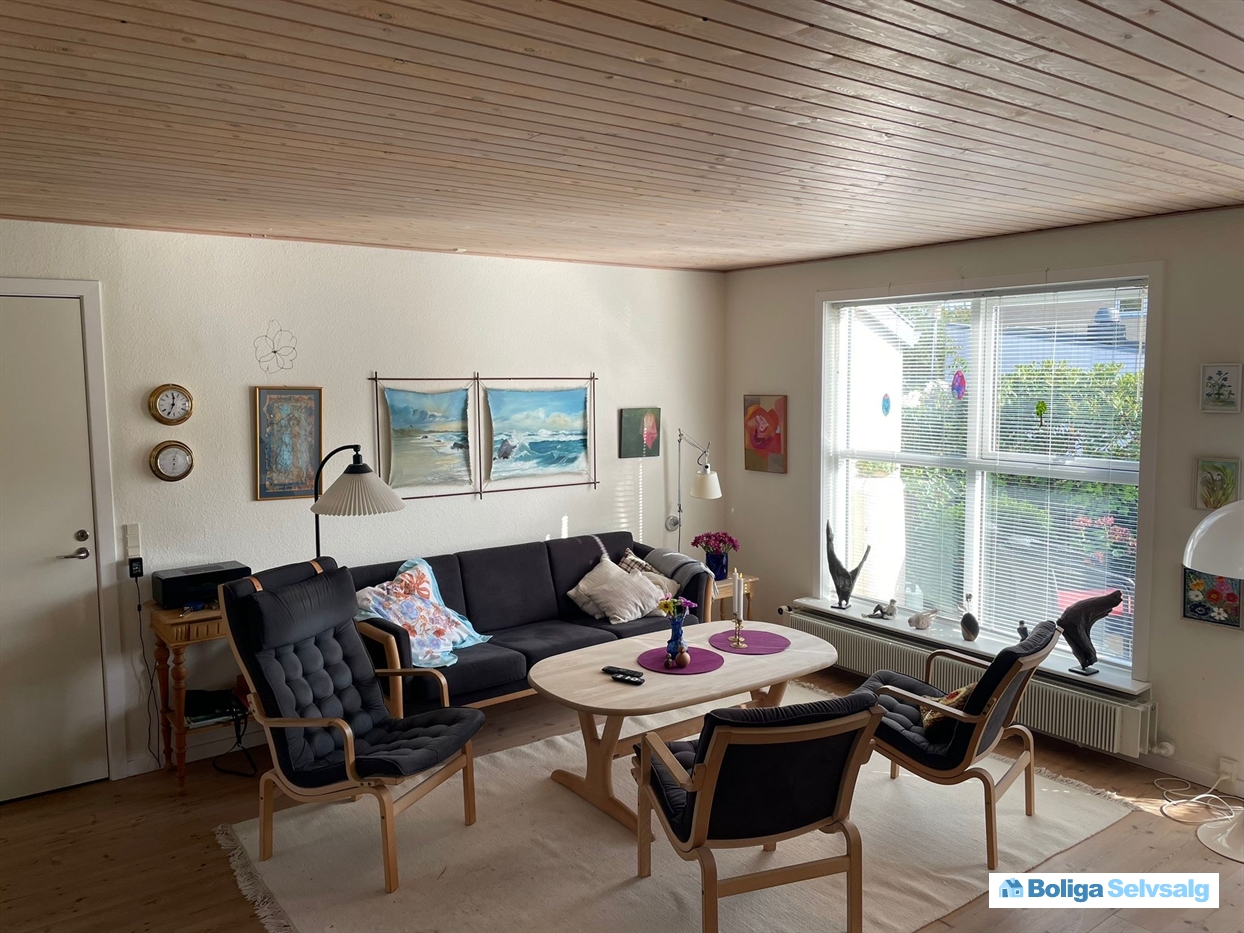 Boligen ligger centralt i en række på tre, hvilket giver lavt varmeforbrug og ingen endegavl – en både økonomisk og komfortabel fordel.