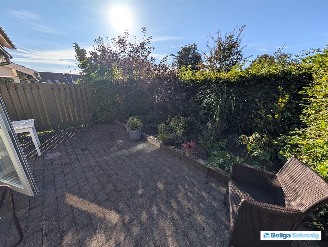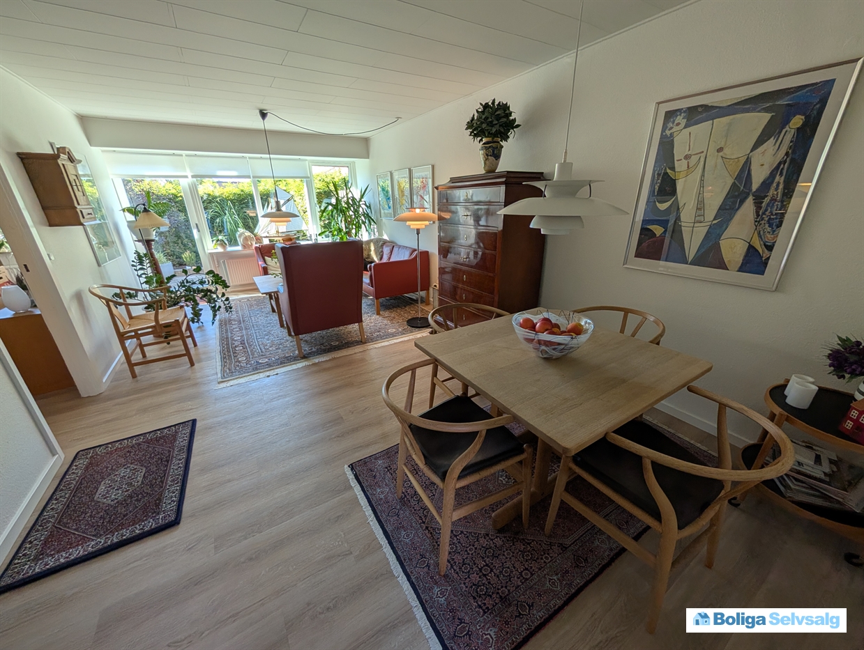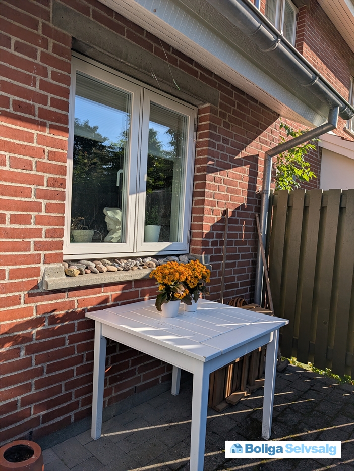 Her er tale om et velholdt rækkehus i en sund andelsforening. Boligen er energioptimeret og har energimærke B, der er installeret nye vinduer, døre og gulve inden for 2 år. Der er en lukket have til boligen, som har aftensol samt et område på husets anden side, hvor der er morgen sol. Huset har 3 værelser, stort bad/toilet samt køkken. Super bolig til både et par og evt. med 1 barn - men også ældrevenlig, da der er ikke er trapper. Der hører stort isoleret skur og en carport til boligen - egen ladestander til el bil er en mulighed.