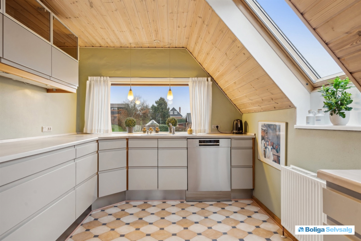 I forlængelse af stuen har du køkkenet, som er praktisk indrettet og giver dig masser af plads til at kunne kokkerere til de store middagsselskaber.