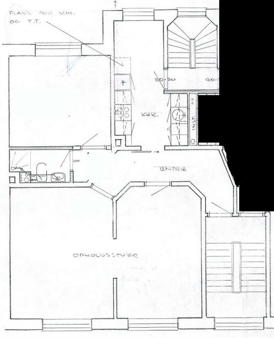 Separat køkken med keramisk komfur, ovn, emhætte, køle-/fryseskab, opvaskemaskine, vaskemaskine, tørretumbler samt bagtrappe direkte til gården.