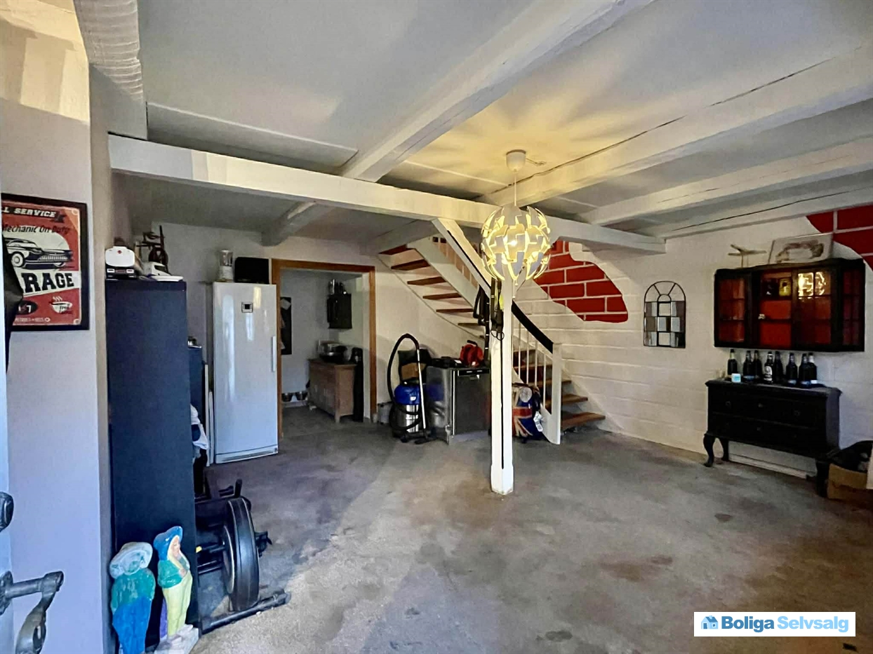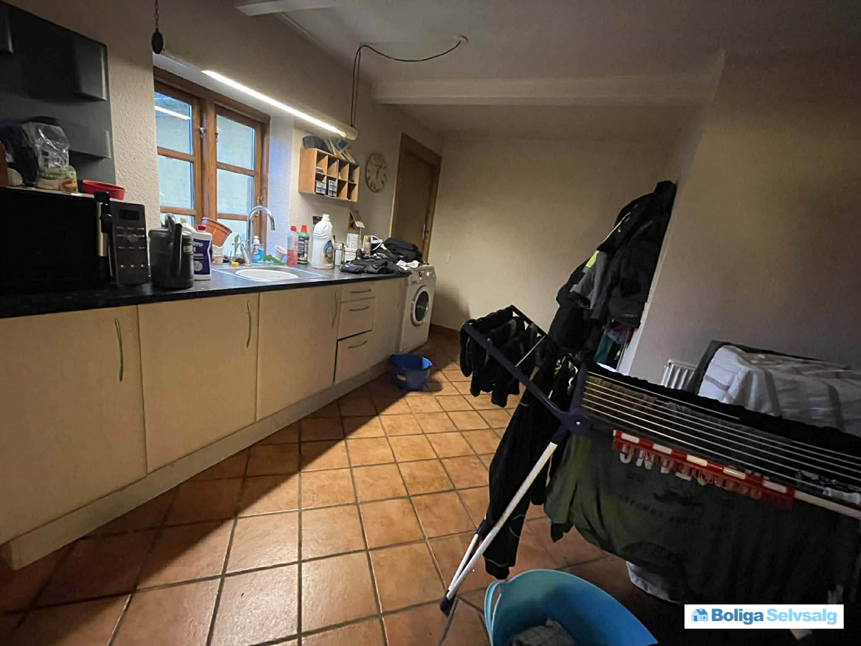 Man kommer ind i beboelsen via lade/udhus, stort renoveret fyrrum med nyrer pillefyr og klinkegulv, stort bryggers/grovkøkken med klinkegulv, lyst og indbydende køkken/alrum, baggang med udgang til haven, badeværelse med bruser. Fra køkkenet adgang til stort værelse/alrum med trappe til 1. sal. I stueplan endvidere stor stue, soveværelse og værelse/konto.