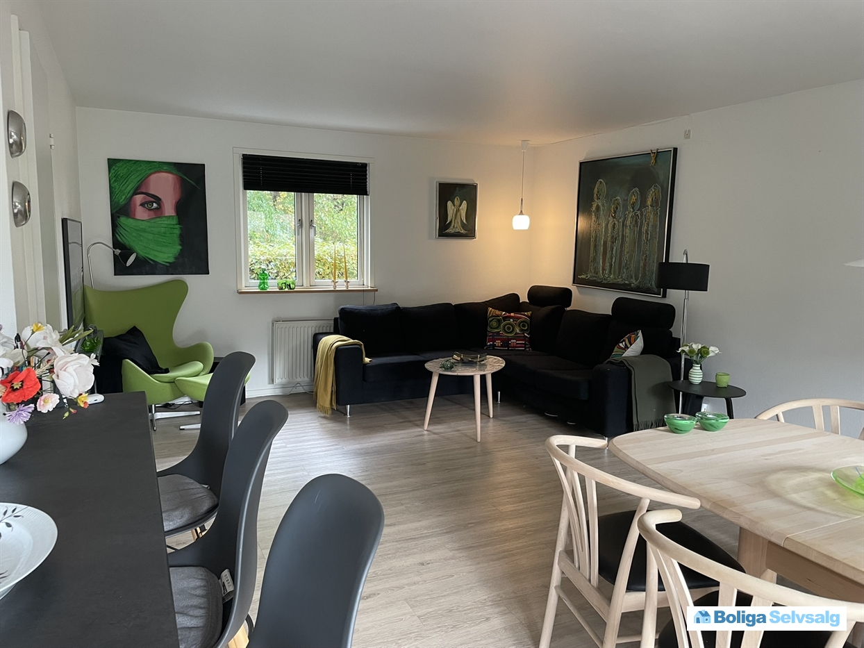 Dejlig 2-plans andelsbolig fra 1991 på 108 m² beliggende i et hyggeligt miljø med dejlige fællesområder, borde/bænke og flot beplantning.