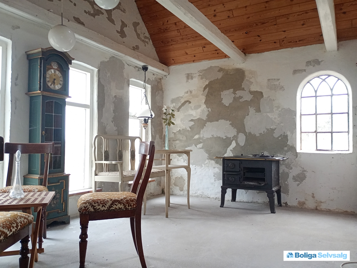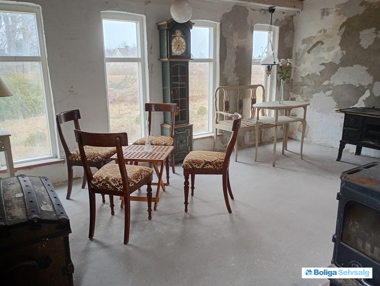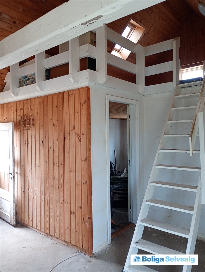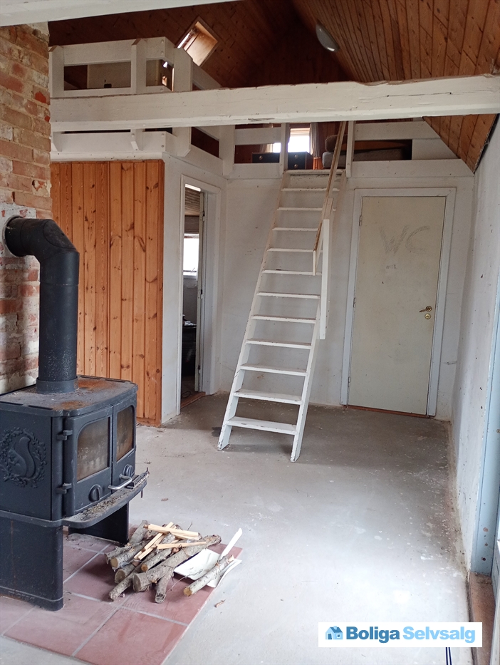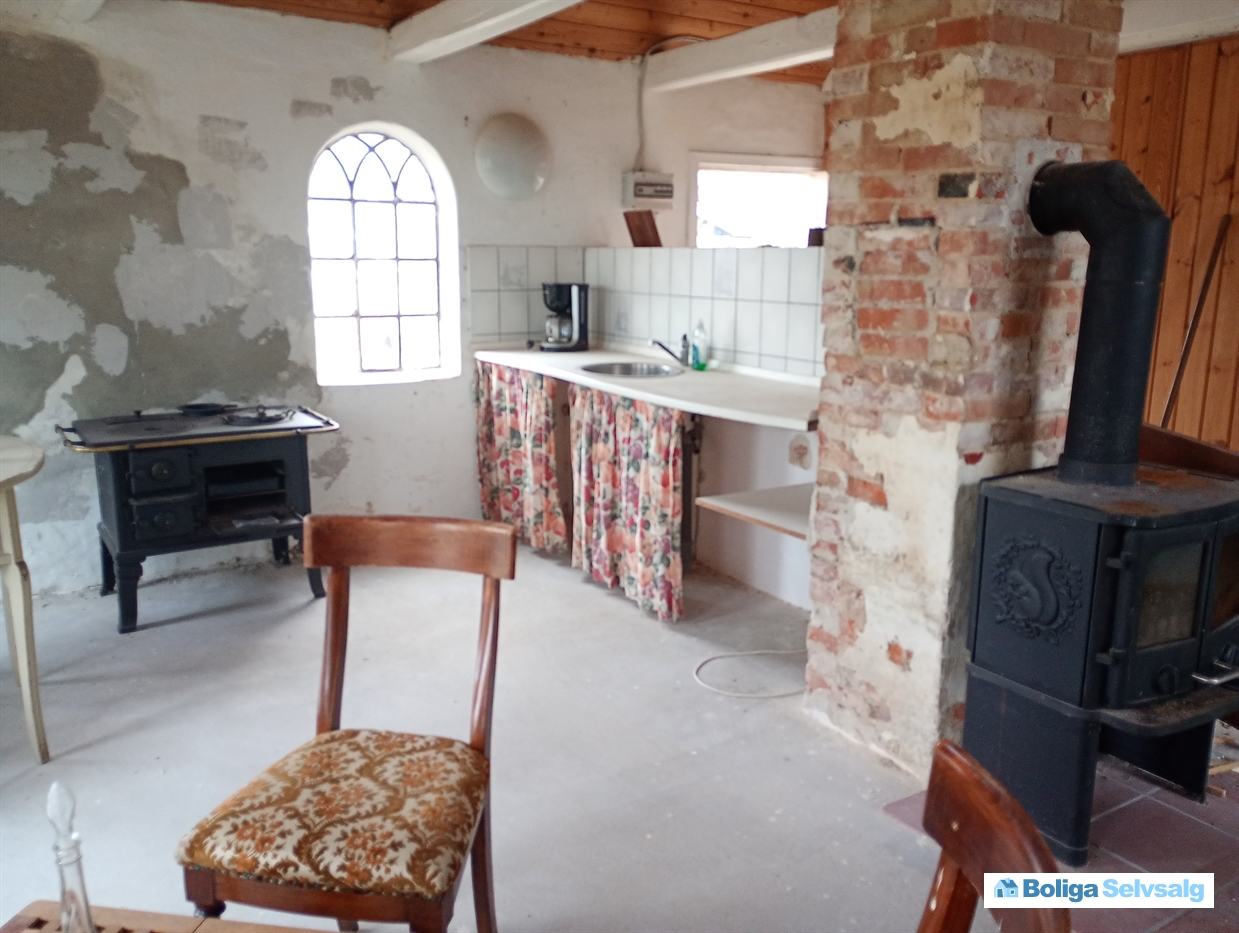 På grunden ligger et lille annex på 52m2, med stue, køkken, soveværelse, hims og toilet og bad. Huset kan bruges, men trænger til en kærlig hånd, hvis man vil lave det rigtig fint.