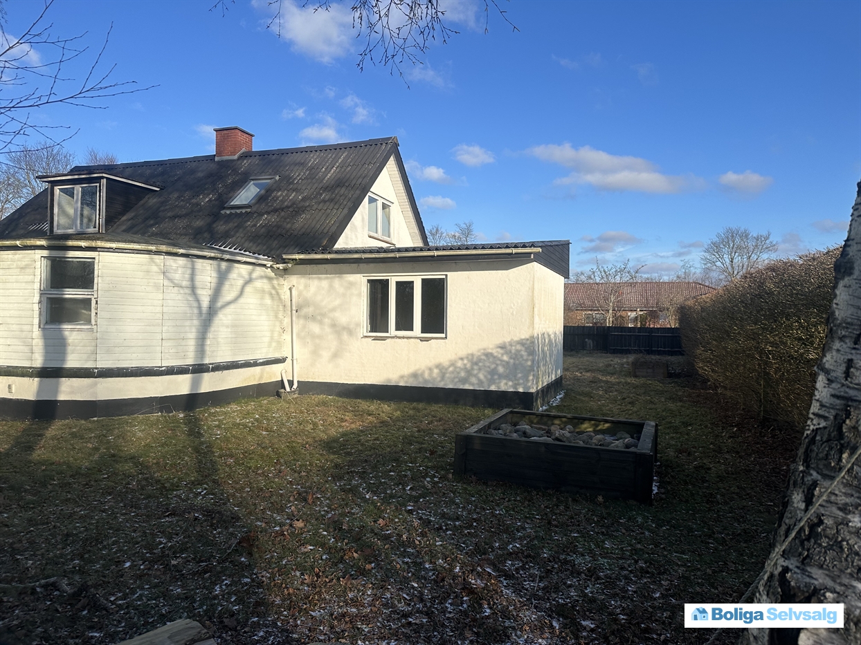 Udenfor venter en dejlig grund med plads til leg, afslapning og hyggelige stunder under åben himmel. Her er der gode muligheder for at skabe personlige uderum, hvor sommeren kan nydes i rolige omgivelser.