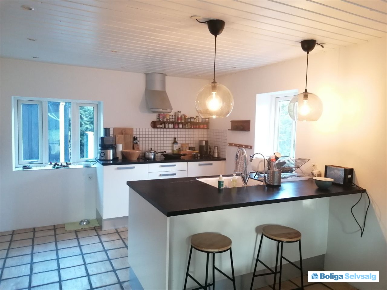 Det er et gennemrenoveret lille husmandssted, hvor der siden 2005 er kommet nyt tag, nyt fundament, og indlagt gulvvarme fra varmepumpe. I forbindelse med renoveringen i 2005 kom også den charmerende tilbygning i træ, der rummer en enestående stue med brændeovn samt glasfront ud mod haven. I alt har I at gøre med 155kvm bolig: spisekøkken, stue, bad, plus 4 små værelser og en hems. Udenfor huset har I carport, skur og selvfølgelig haven, hvor der allerede er anlagt køkkenhave, drivhus og hønsegård.