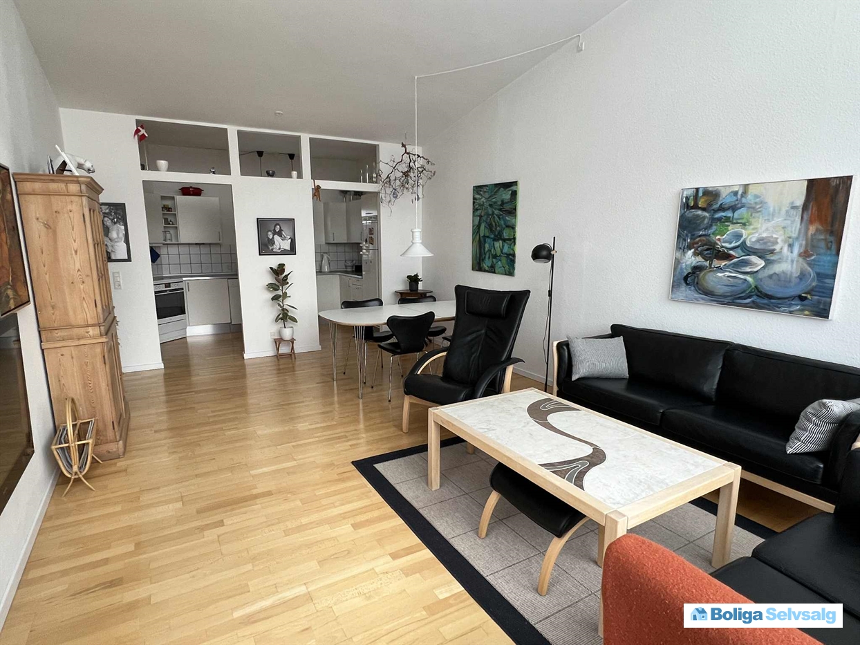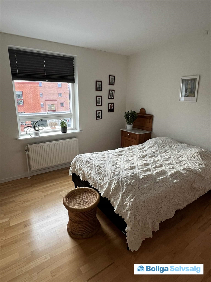 I det populære Sydbyen i Silkeborg finder du denne lyse og rummelige andelslejlighed på 85 kvm, beliggende på 2. sal med elevator. Lejligheden har højt til loftet og en simpel planløsning med 2 værelser.