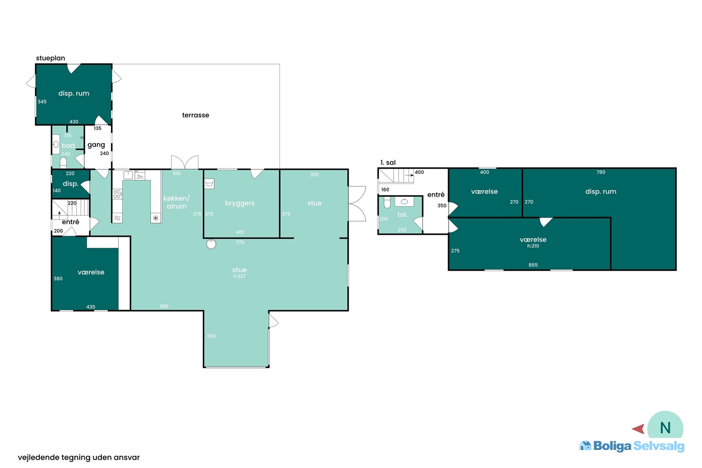 Fyr og vaskerum ca 12 kvm.