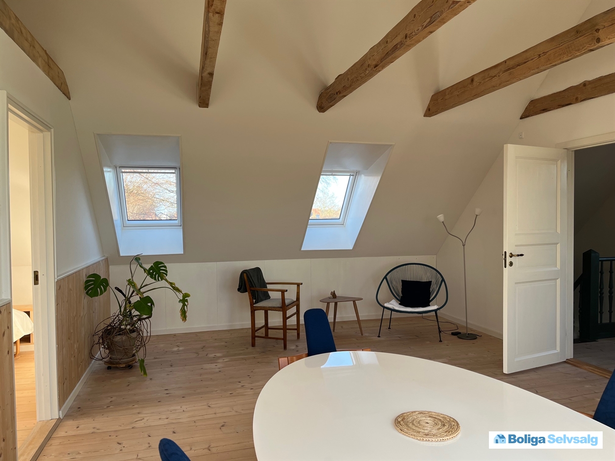 Hovedbygningen er total renoveret med sunde materialer op på en måde som er tro mod husets oprindelige byggestil. Jordvarmeanlægget, de omlagte tage og indretning af tagetagen, så den udgør en selvstændig boligenhed med køkken og badeværelse, er blandt de store fordele ved huset.