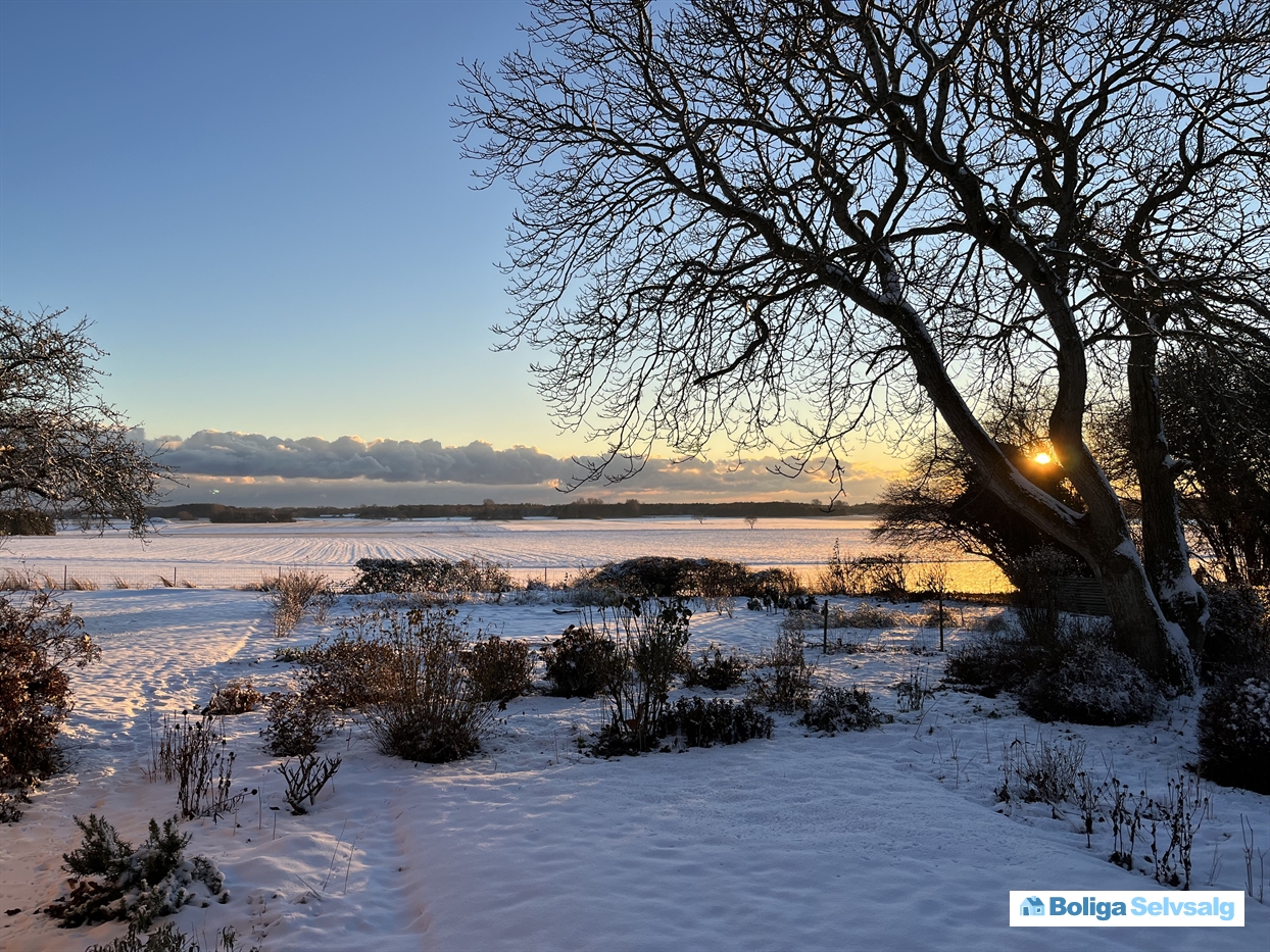 Udsynet over markerne mod kysten gør de skiftende årstider med vekslende vejr og lys til en del af boligens helt store kvaliteter.