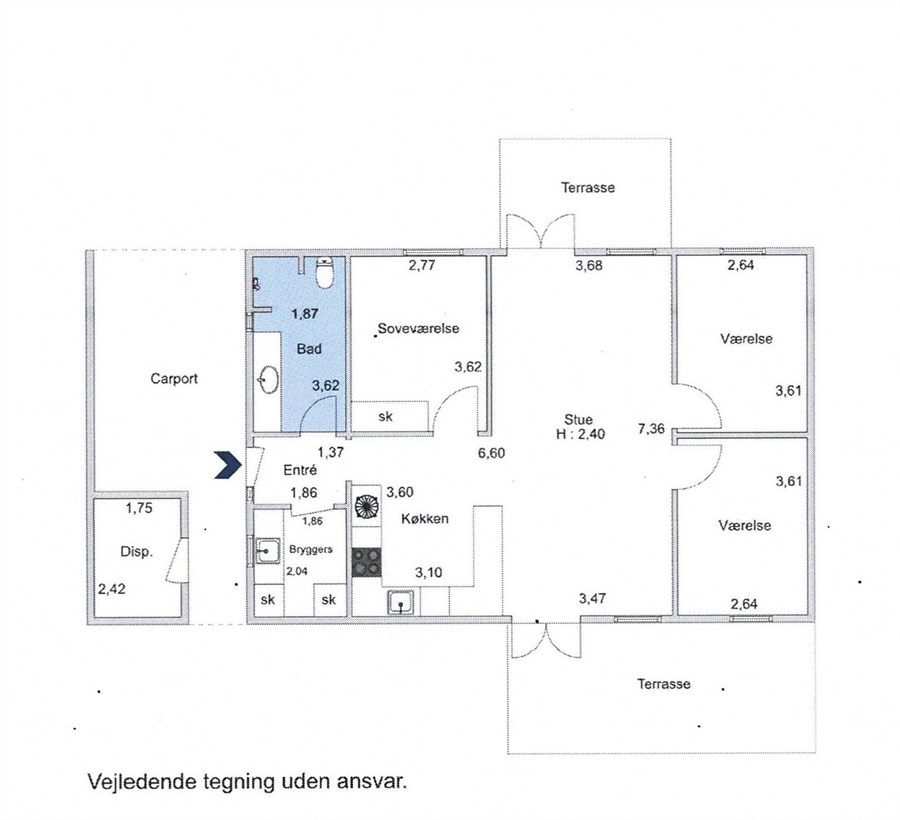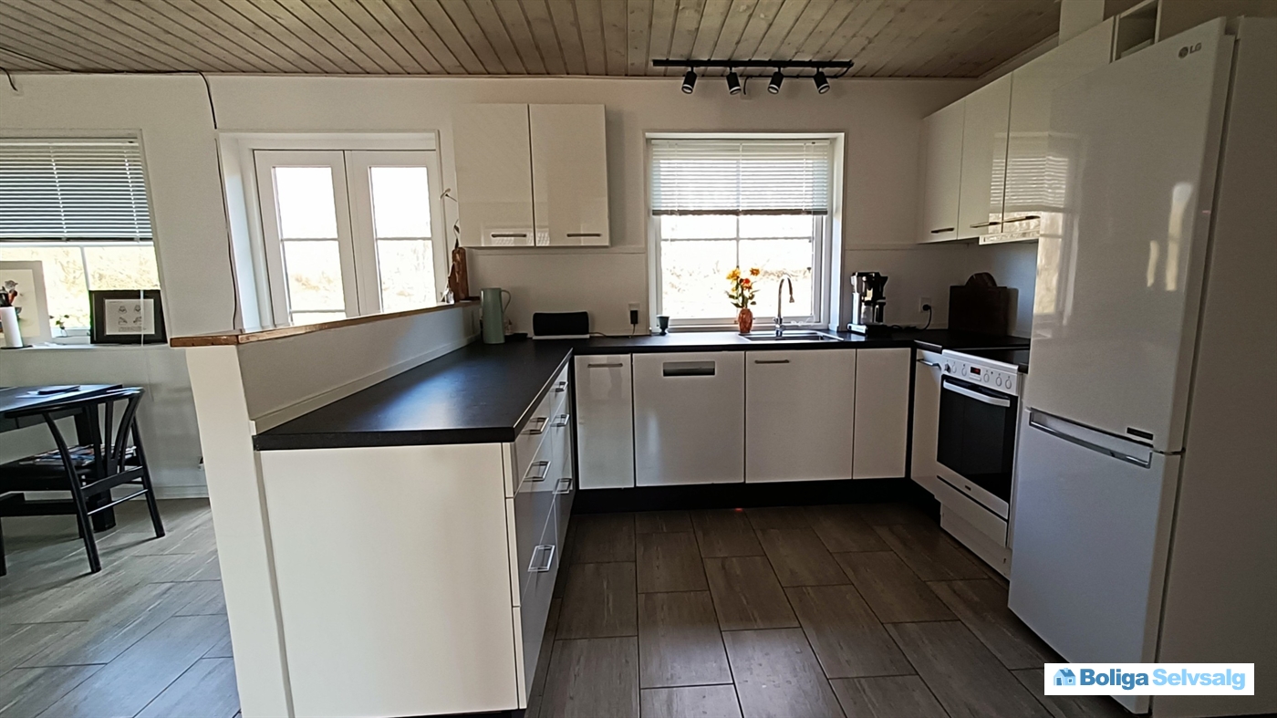 - Kvalitets-hvidevarer: LG kølefrys, Voss induktionskomfur, Blomberg opvaskemaskine, AEG vaskemaskine,