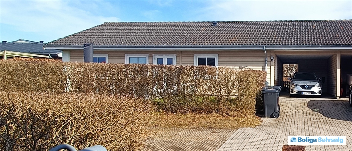 Boligen er et velholdt dobbelthus med en praktisk og moderne planløsning