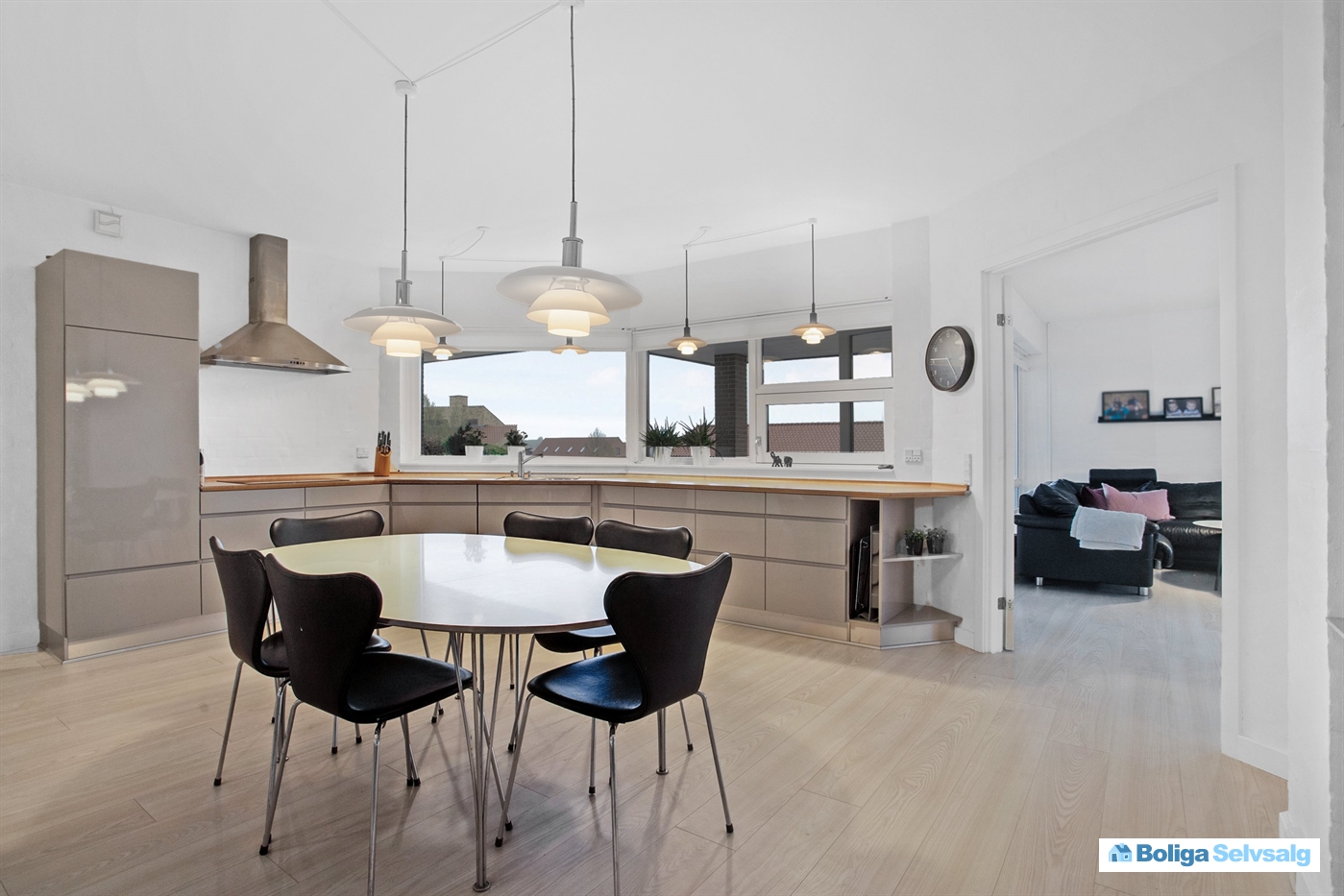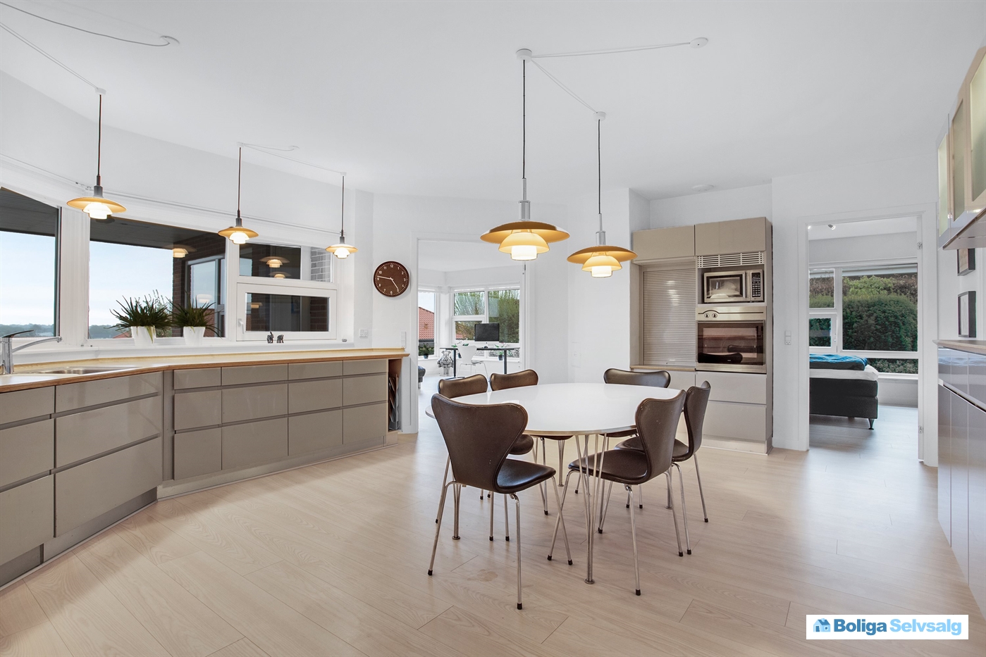 Et stort Svane-spisekøkken som naturligt hjemmets hjerte, en separat stue med store vinduespartier - begge med den smukkeste udsigt året rundt.