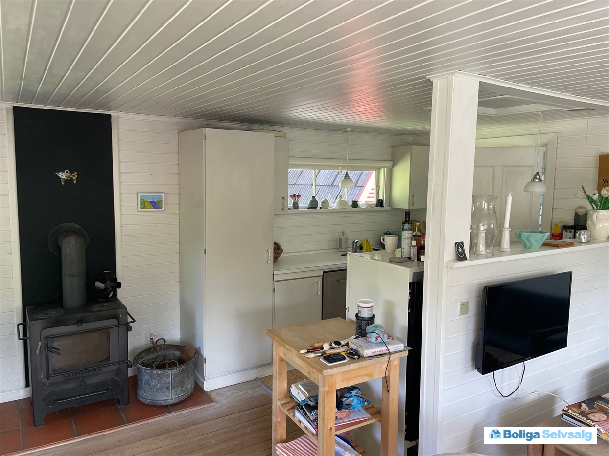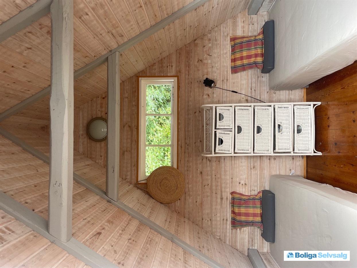 Dette sommerhus indeholder stue/køkken/alrum (med brændeovn), med direkte forbindelse til stor delvis overdækket terrasse. Et stort dobbeltværelse samt enkeltværelse, der begge har adgang til det centrale bade/vaskerum - med dør ud til baghave (med udendørsbrus), og med et komfortabelt anneks, der giver 2 ekstra sengepladser.
