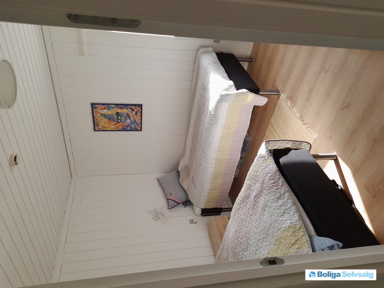 Der findes 2 gode værelser, begge med 2 nyere senge. Soveværelset er så stort, at der er plads til en køjeseng langs den ene væg. Man kan således nemt øge antallet af sovepladser til 6. I stuen er der en lang bred sofa, hvor der også nemt kan redes op til 1 voksen eller 2 børn. Nyrenoveret flot badeværelse med væghængt toilet, bruser, vaskemaskine og tørretumbler.