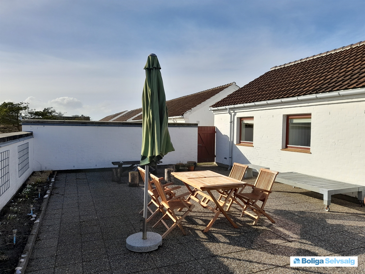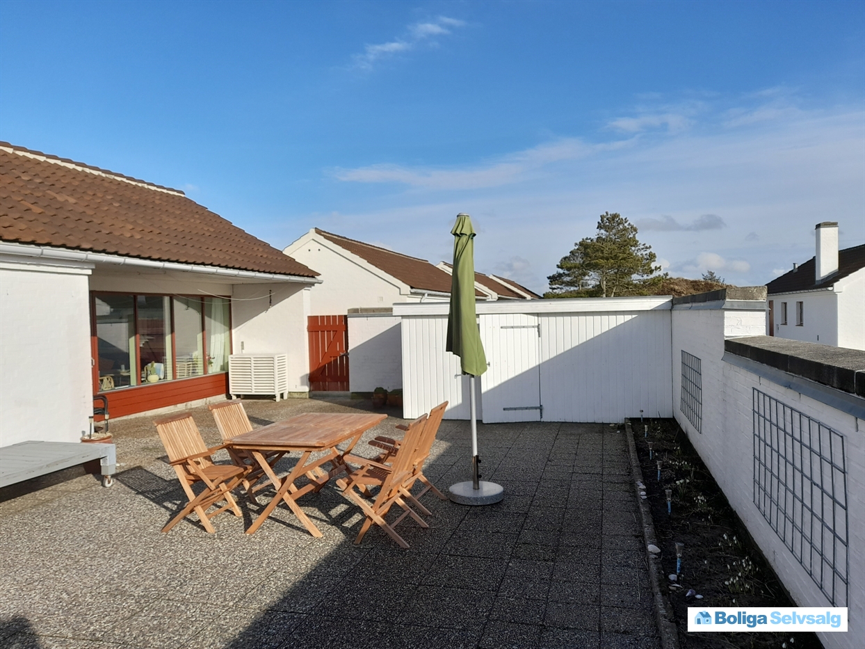 Huset ligger skønt i klitlandskabet, som en del af en klynge af huse. Her er der fred og ro og kun ca. 800 m til den brede sandstrand.