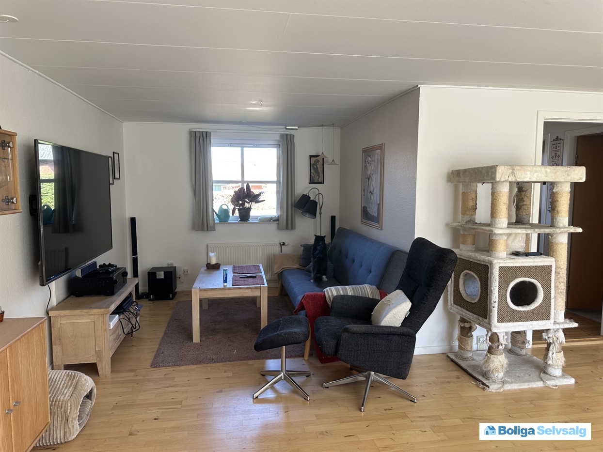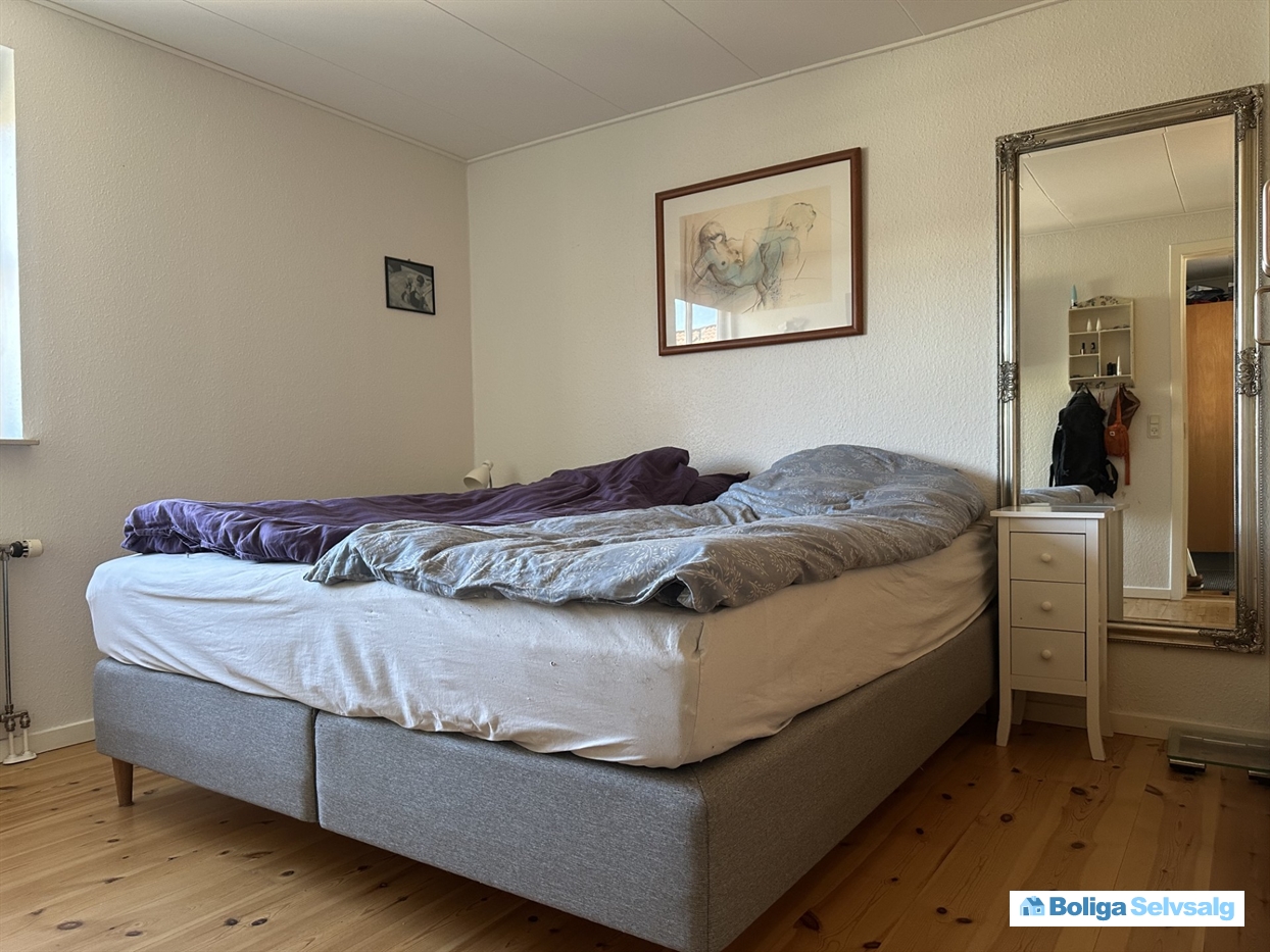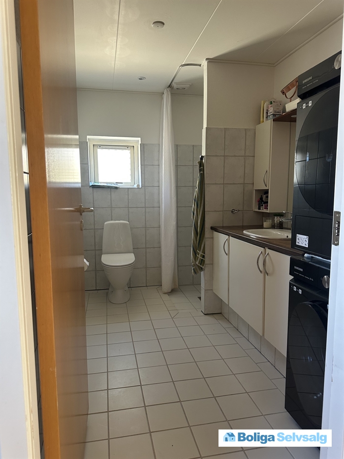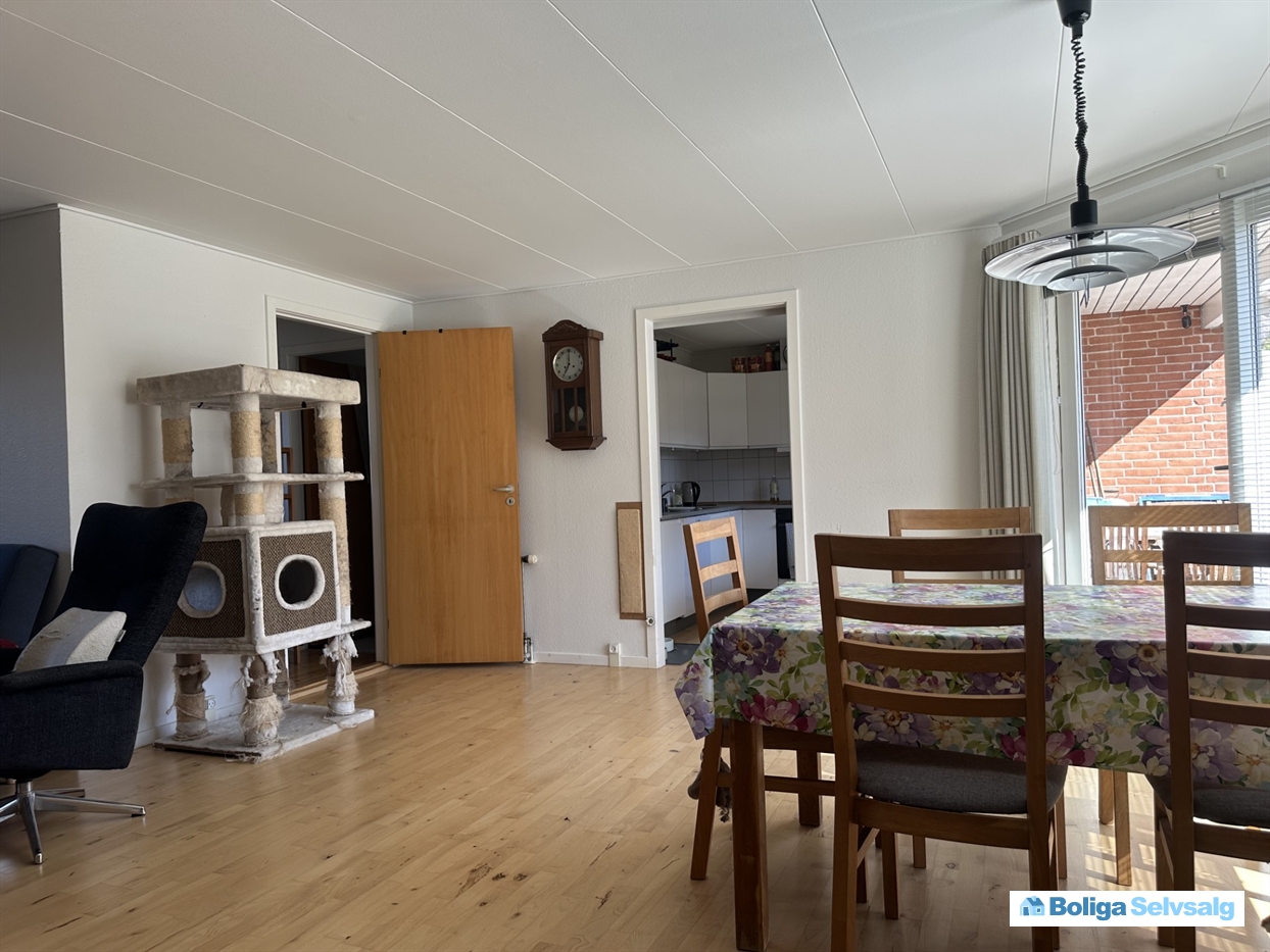 Indenfor bydes du velkommen i en indbydende planløsning Østvendt Soveværelse med 2 store dobbelt skabe, den store vinkel stuen vender sydøst. Derudover finder du et pænt badeværelse med bruseniche og vaskesøjle. Entreen giver en naturlig adgang til hele lejligheden, hvor adgangen til køkkenet er udført med skydedør.