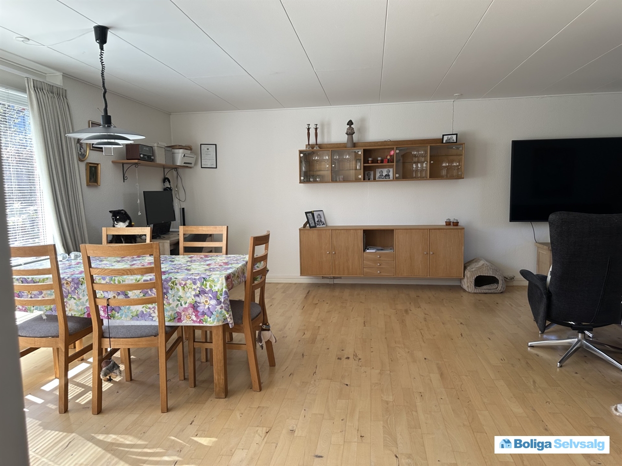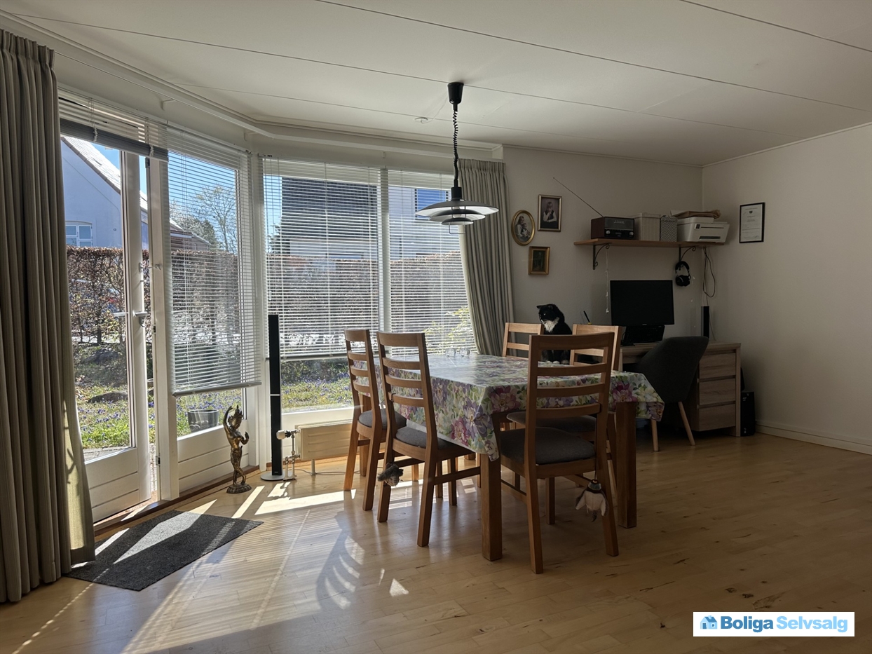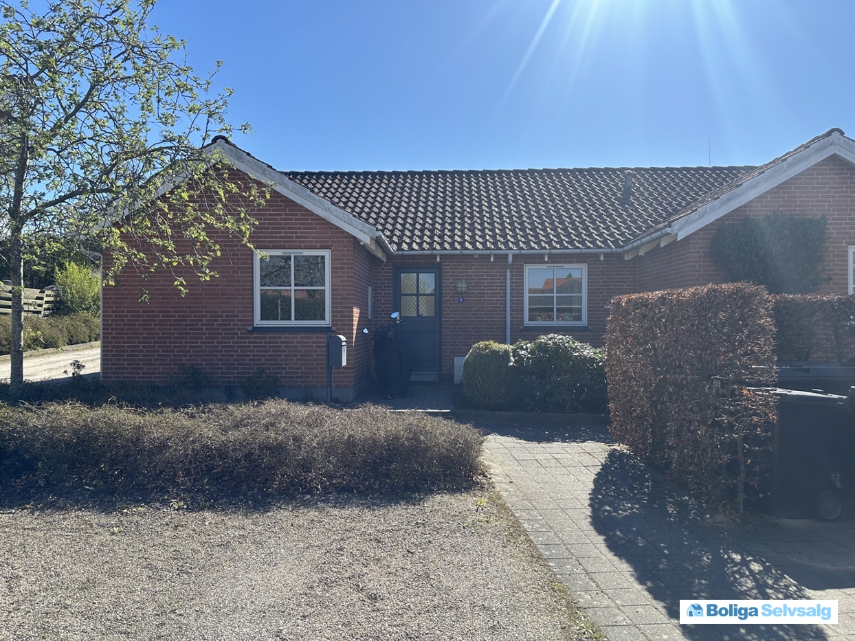 Her får du 77 veldisponerede kvadratmeter, hvor hver eneste meter er udnyttet optimalt. Som ende rækkehus får du ekstra lys og luft omkring dig, og udenfor venter en dejlig have med fliseterrasser foran og bagved , så du altid kan finde en solrig eller skyggefuld krog at nyde dagen i.