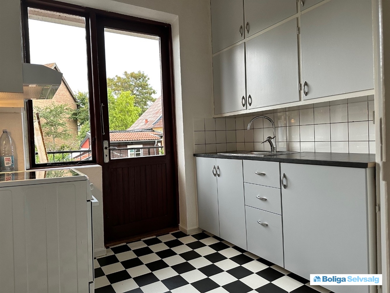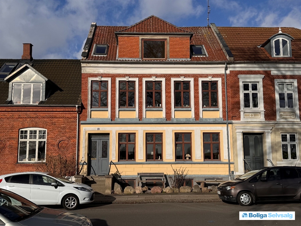 Flot udsigt over Faaborg fjord fra alle tre lejligheder i denne Købstadsejendom opført i 1896. Mod nord er der en altan til hver lejlighed med fin udsigt over byen og op mod Svanninge bakker.